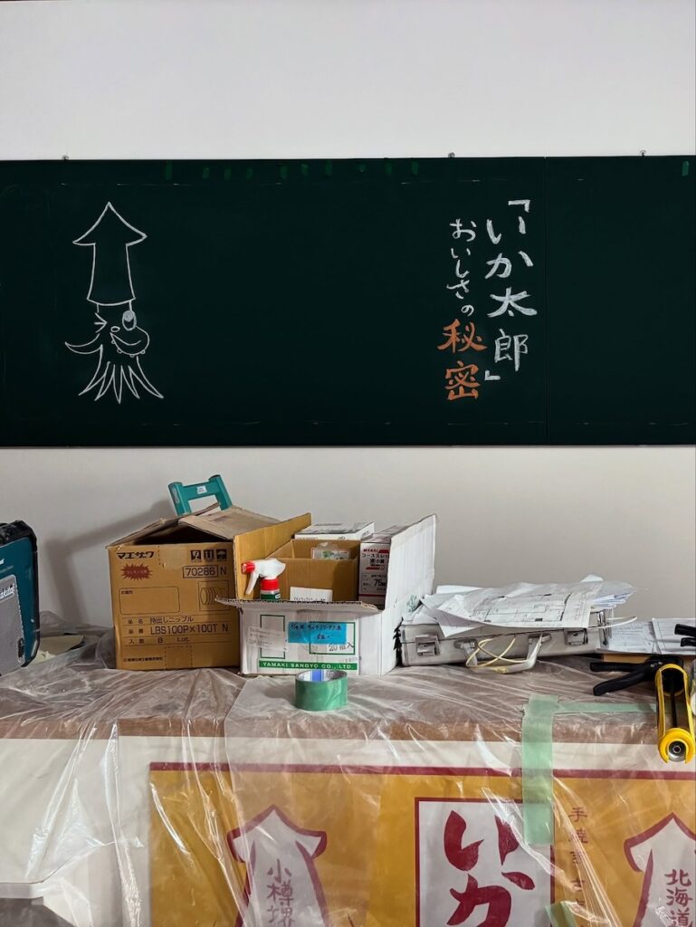 小樽の「いか太郎本舗」様の店舗リニューアルに伴い、店内の黒板描画を担当しました。